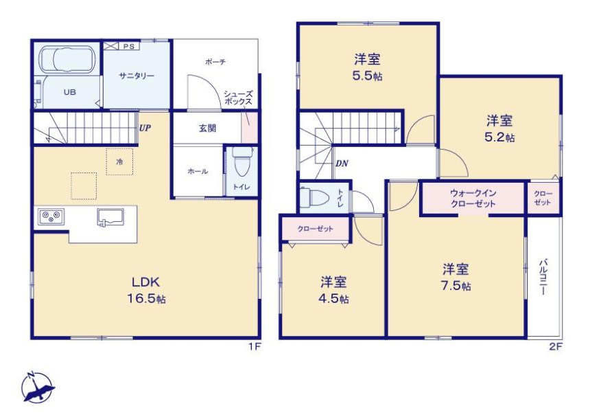 LDK 16.5帖 1室 洋室 7.5帖 1室 洋室 5.5帖 1室 洋室 5.2帖 1室 洋室 4.5帖 1室 |