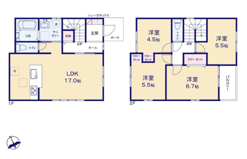 LDK 17.0帖 1室 洋室 6.7帖 1室 洋室 5.5帖 2室 洋室 4.5帖 1室 |
