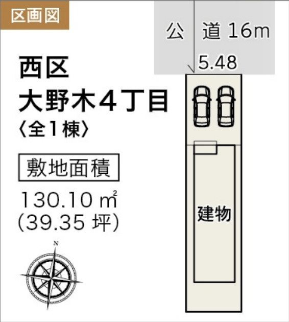 | 接道状況 | 一方 (北側 公道16.0m 間口5.4m) | ||