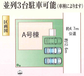 | 接道状況 | 一方 (東側 公道4.7m 間口12.6m) | ||